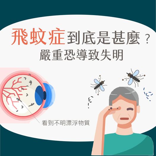 醫師提醒:發現眼前出現飛蚊症時,先不用驚慌,請至眼科做檢查,若沒有病變只要與它合平共處,當有特殊變化突然飛蚊劇增或伴有閃電光,請盡快回診!